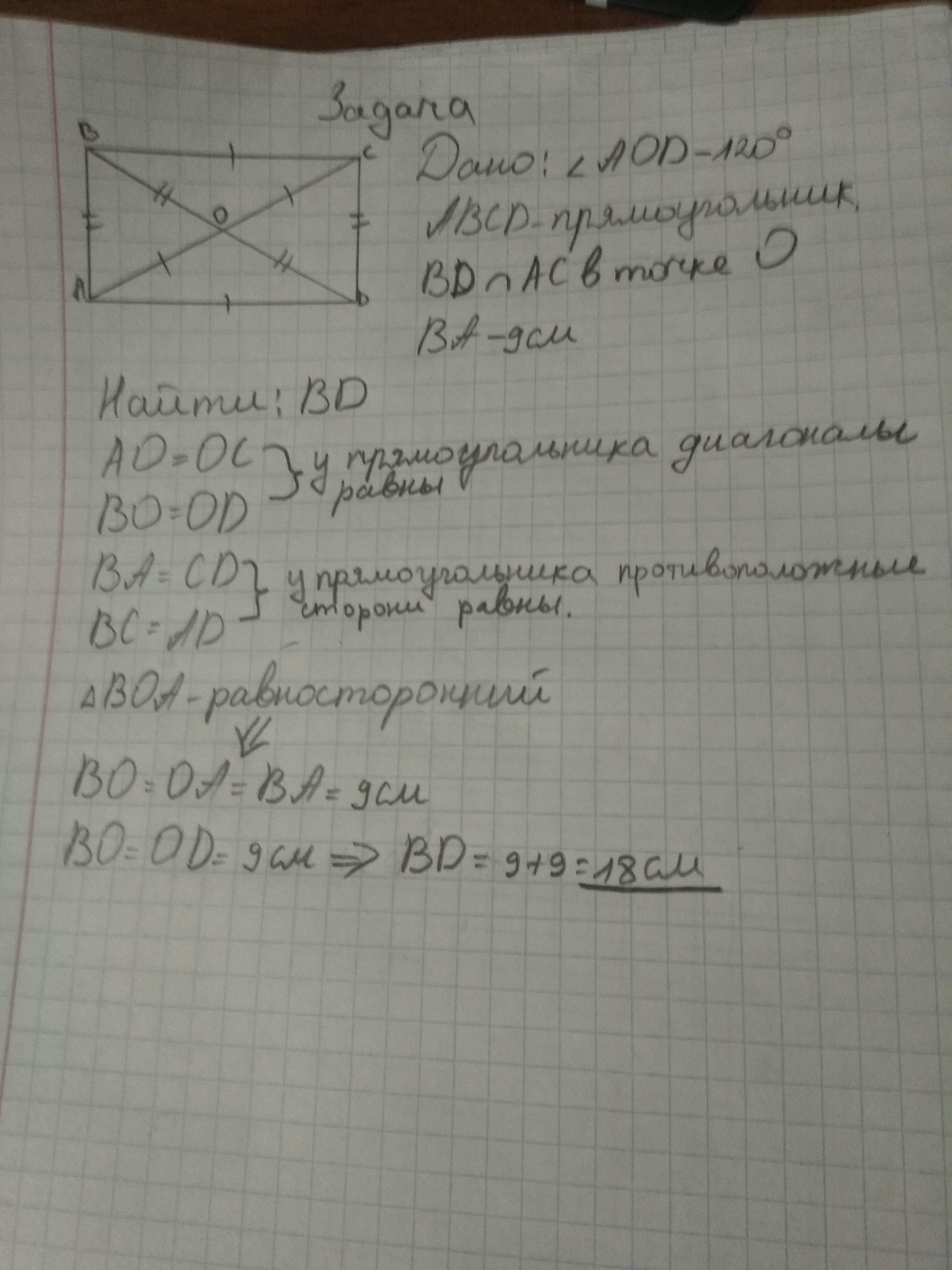 Это вообще умная задача, диагонали равные, то есть 9 см + 9 см = 18 см