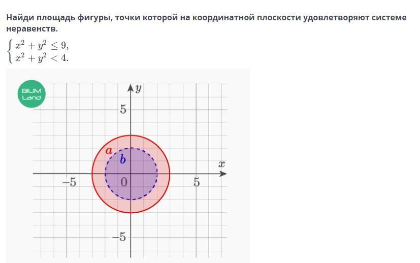 Найди площадь фигуры, точки которой на координатной плоскости удовлетворяют системе неравенств.