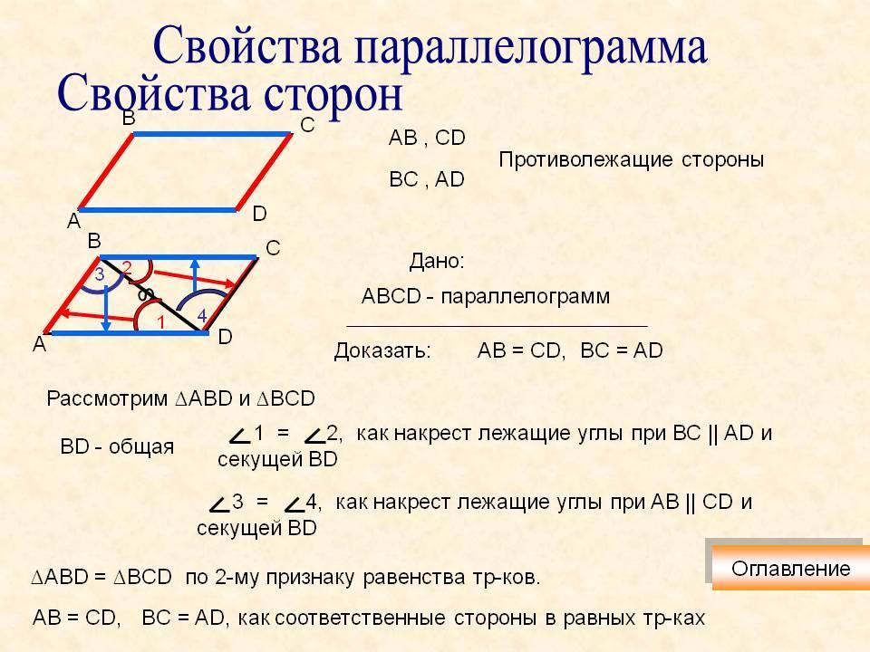 Параллелогра́мм — это четырёхугольник, у которого противоположные стороны попарно параллельны, то есть лежат на параллельных прямых.;