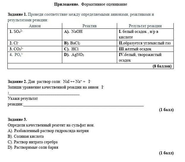 Задание 1. Проведи соответствие между определяемыми анионами, реактивами и результатами реакции