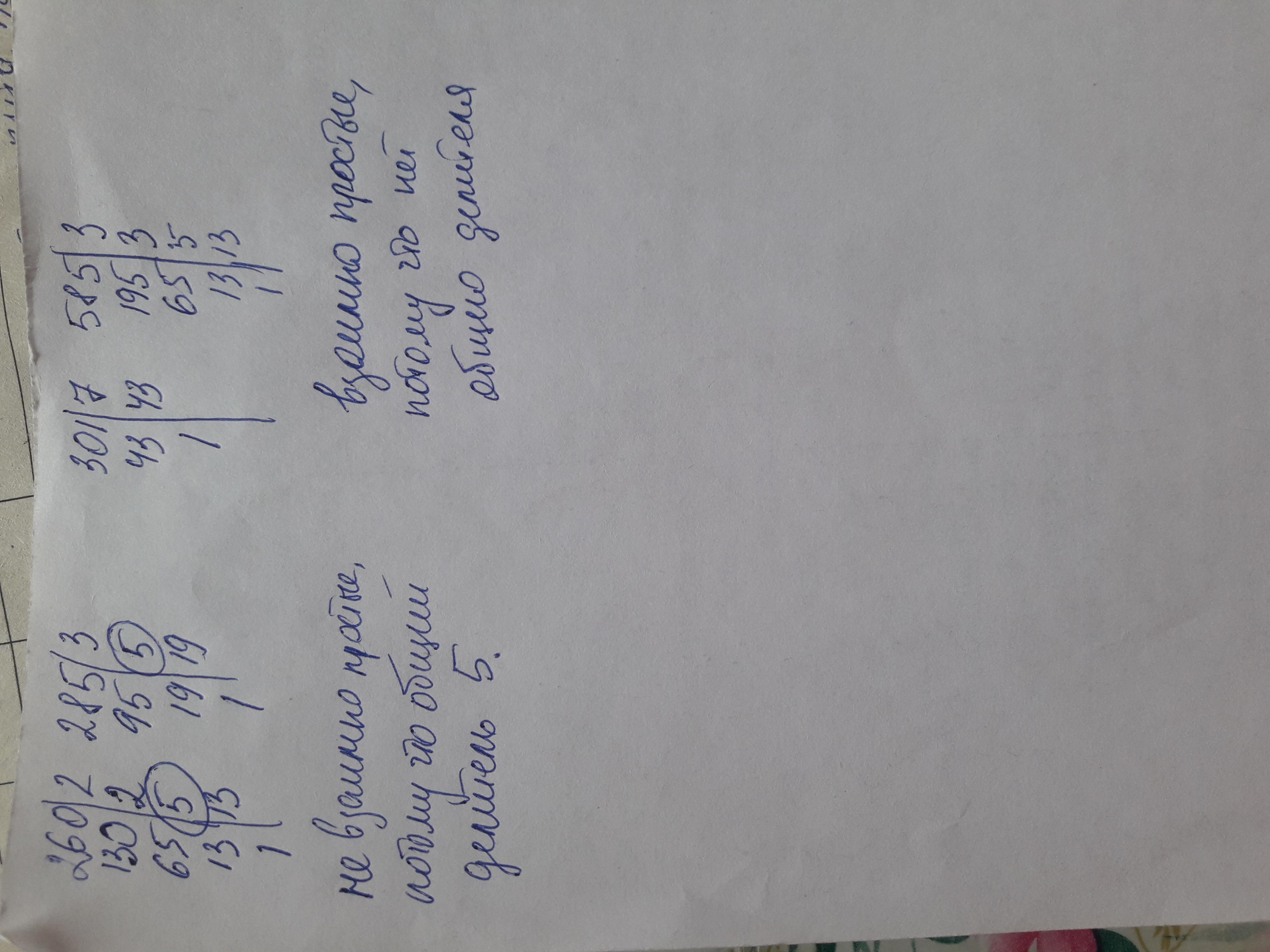 Общих делителей у чисел 301 и 585 нет, значит числа взаимно простые