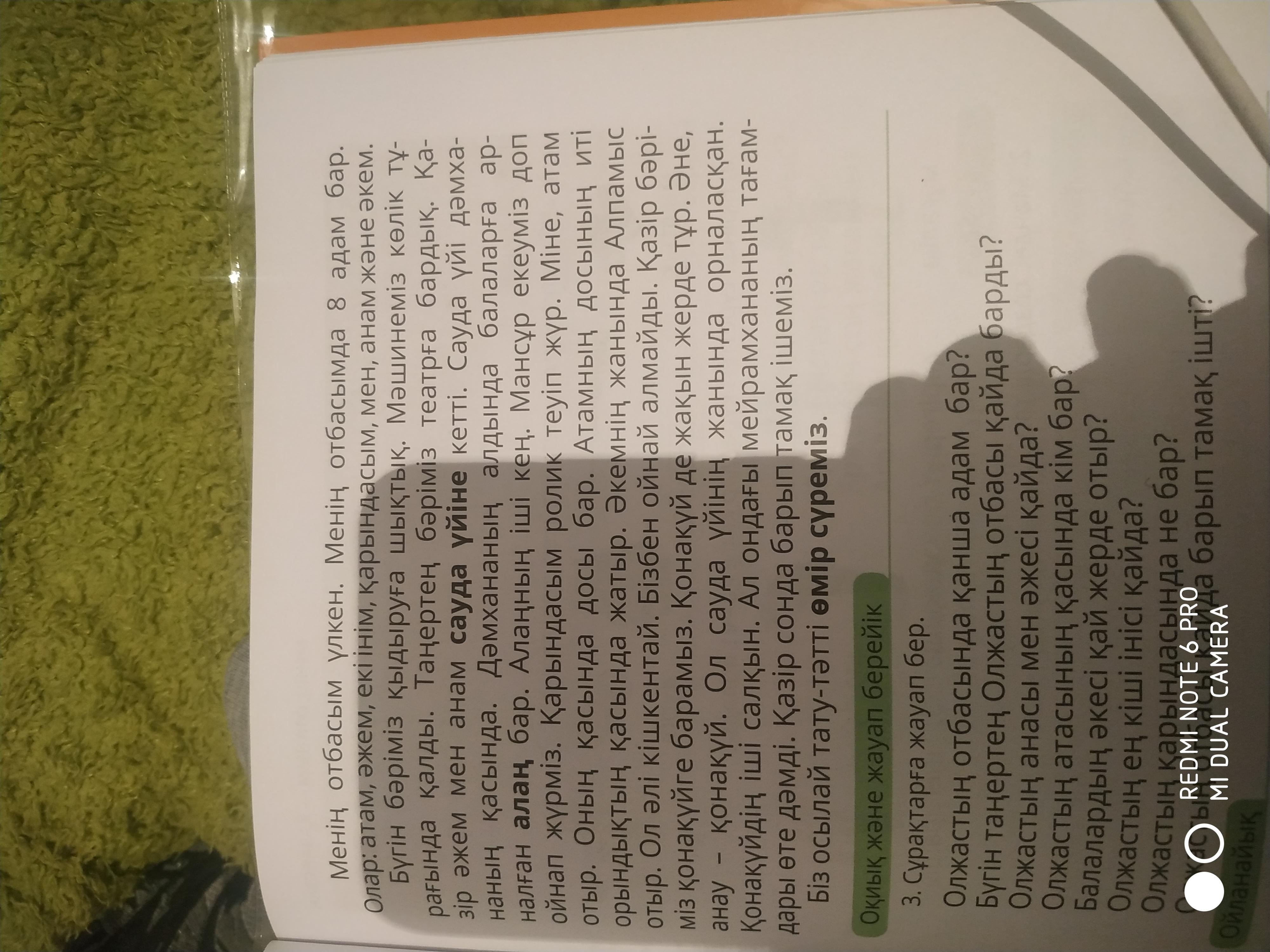 2. Бүгін таңертең Олжастың отбасы қыдыруға театрға барды.