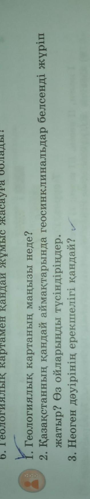 1)Геологиялық Карта — жер қыртысының геологиялық құрылысын белгілі бір масштабта графикалық бейнелеу. Геологиялық Карта геол. түсіру, геол. зерттеулер нәтижесінде жиылған материалдарды қорыту арқылы жасалады. Жер қыртысының құрылысы мен дамуы, ондағы кен байлықтарының таралу заңдылықтары туралы тұжырым жасауға, іздеу мен барлау, құрылыс, сумен қамтамасыз ету, мелиорация жұмыстарын жобалауға мүмкіндік береді.