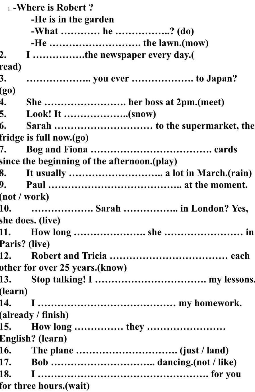 Выполните упражнение. Нужно раскрыть скобки и поставить глагол в форму настоящего времени(Prsent simple,Present Perfect, Prsent Perfect Continuous).