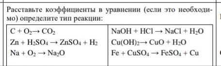 раставте коэффиценты в (если это необходимо) уравнении и определите тип реакции