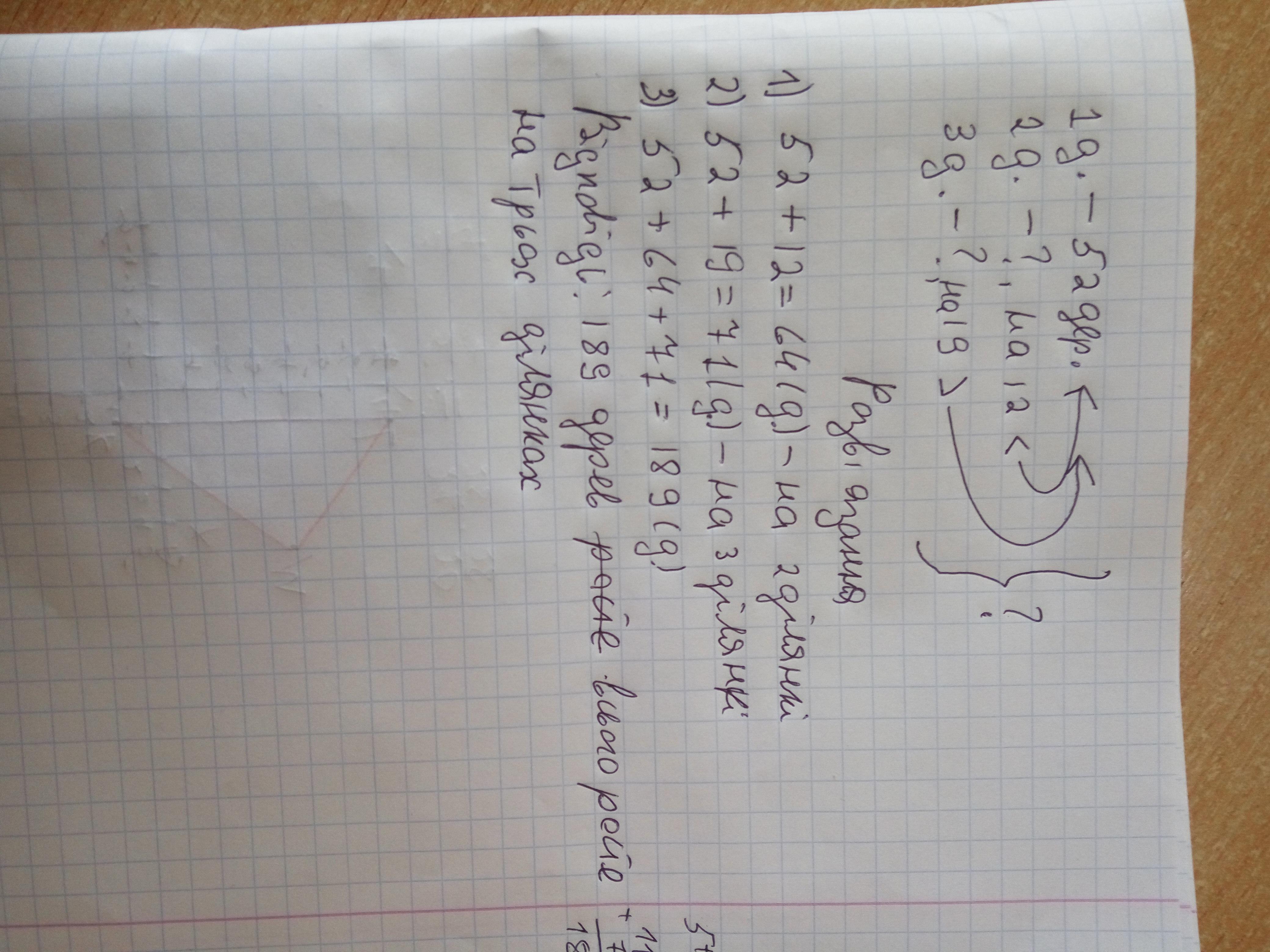 36. На першій ділянці росте 52 дерева, що на 12 дерев менш