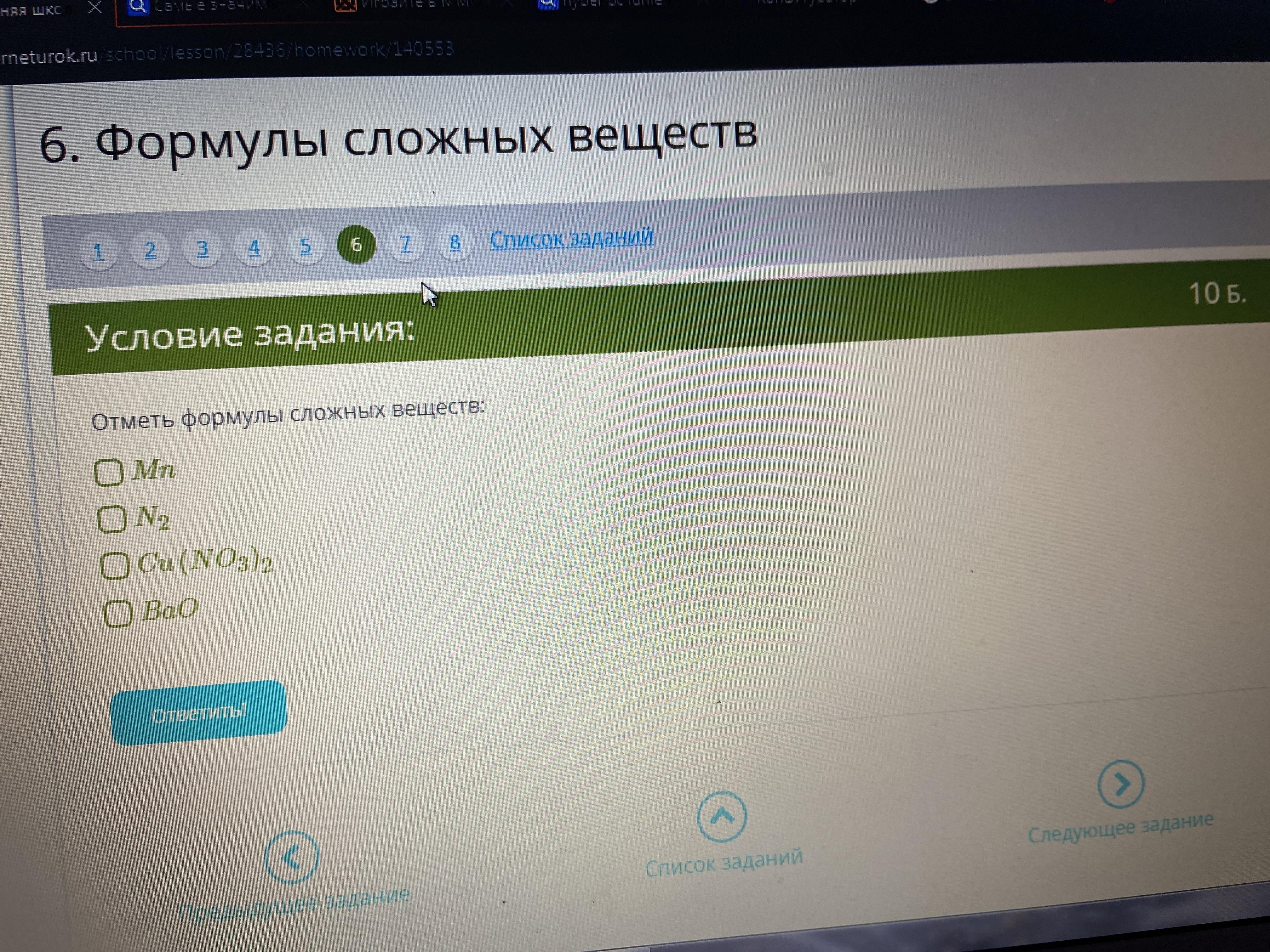 - Сложные вещества — вещества, состоящие из атомов разных химических элементов.