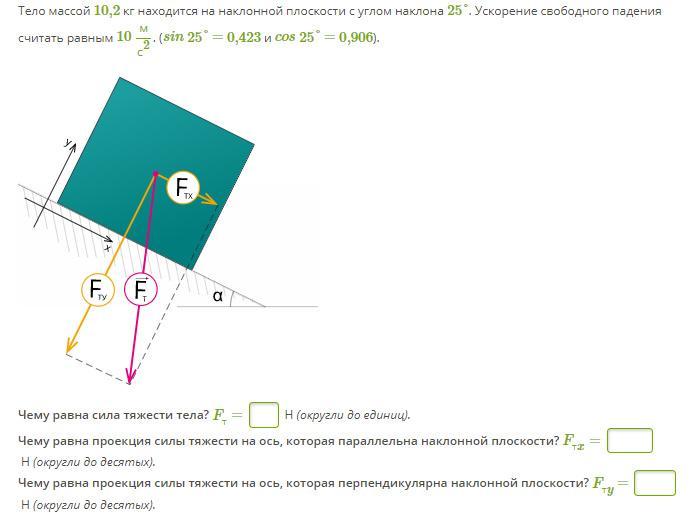 1)Fтх=m*g*Cos(a)=10,2*10*0,906=92.4