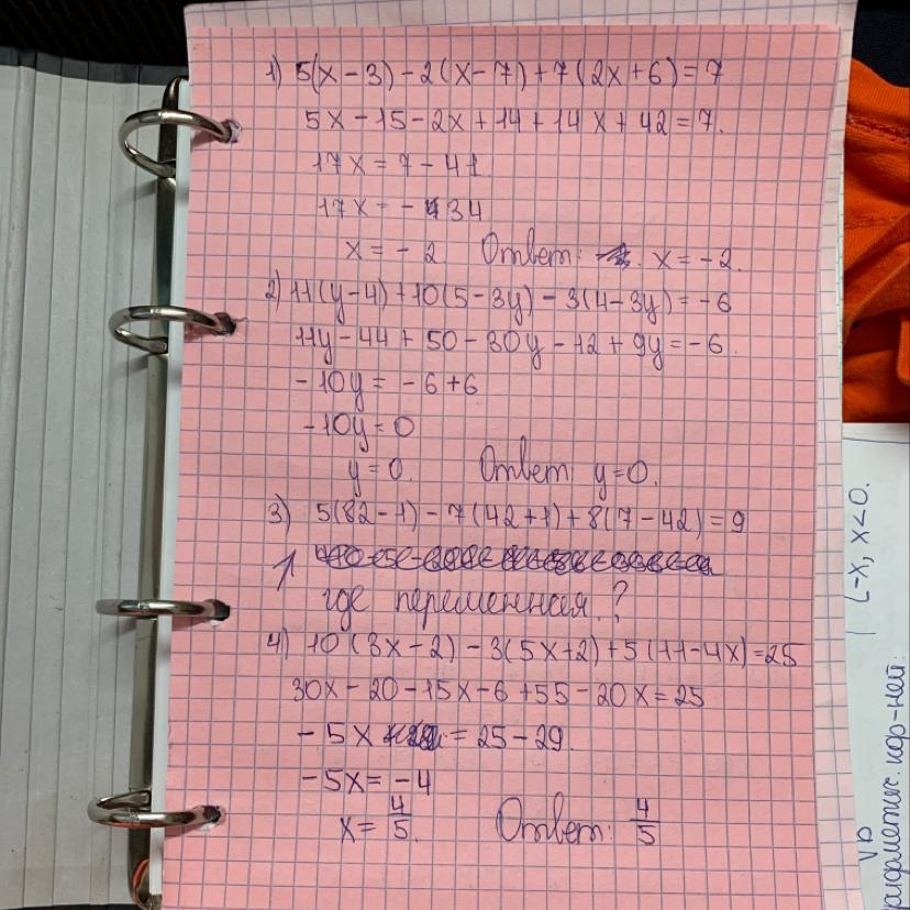 5(x — 3)—2 (x — 7)+7 (2x+6)=7;