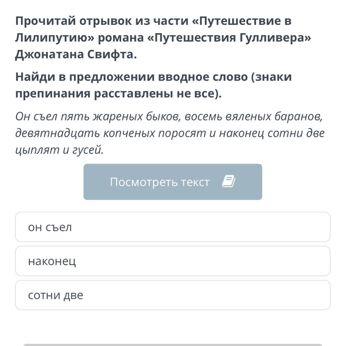 Прочитай отрывок из части «Путешествие в Лилипутию» романа «Путешествия Гулливера» Джонатана Свифта.