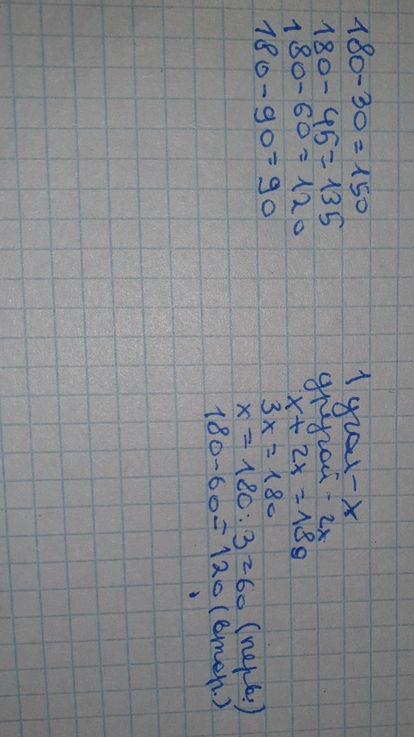 в 1 просто вычитать из 180, тк Сумма смежных углов равна 180 градусам