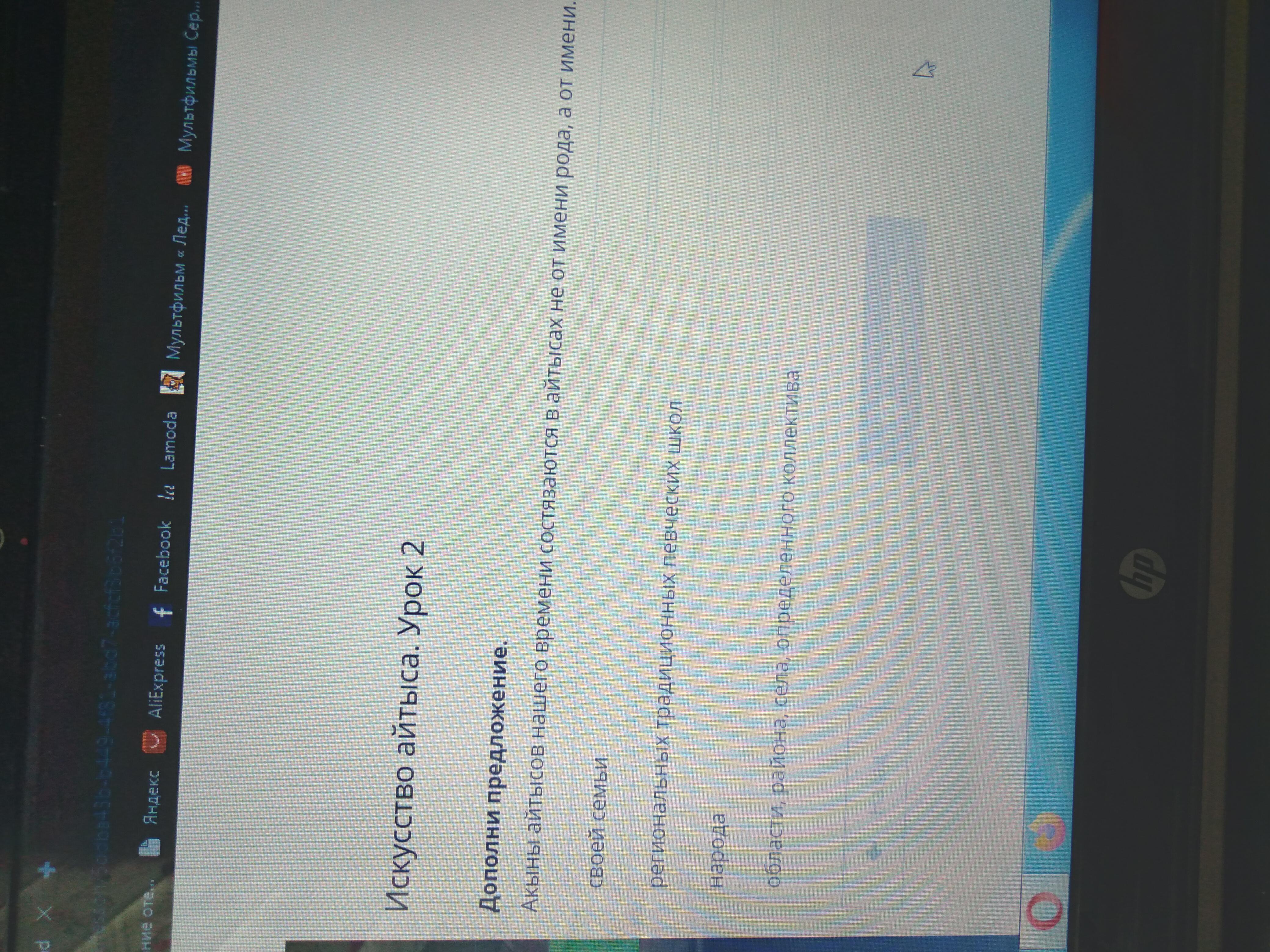 Дополни предложение: Акыны айтысов нашего времени состязаются в айтысах не от имени рода, а от имени: