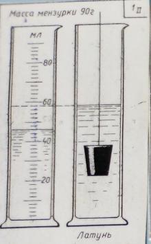1) Определить цену деления мензурки 2) Определить предел измерения мензурки 3) Определить уровень жидкости в левой мензурке 4) Определить уровень жидкости в правой мензурке 5) Определить объем погруженного тела