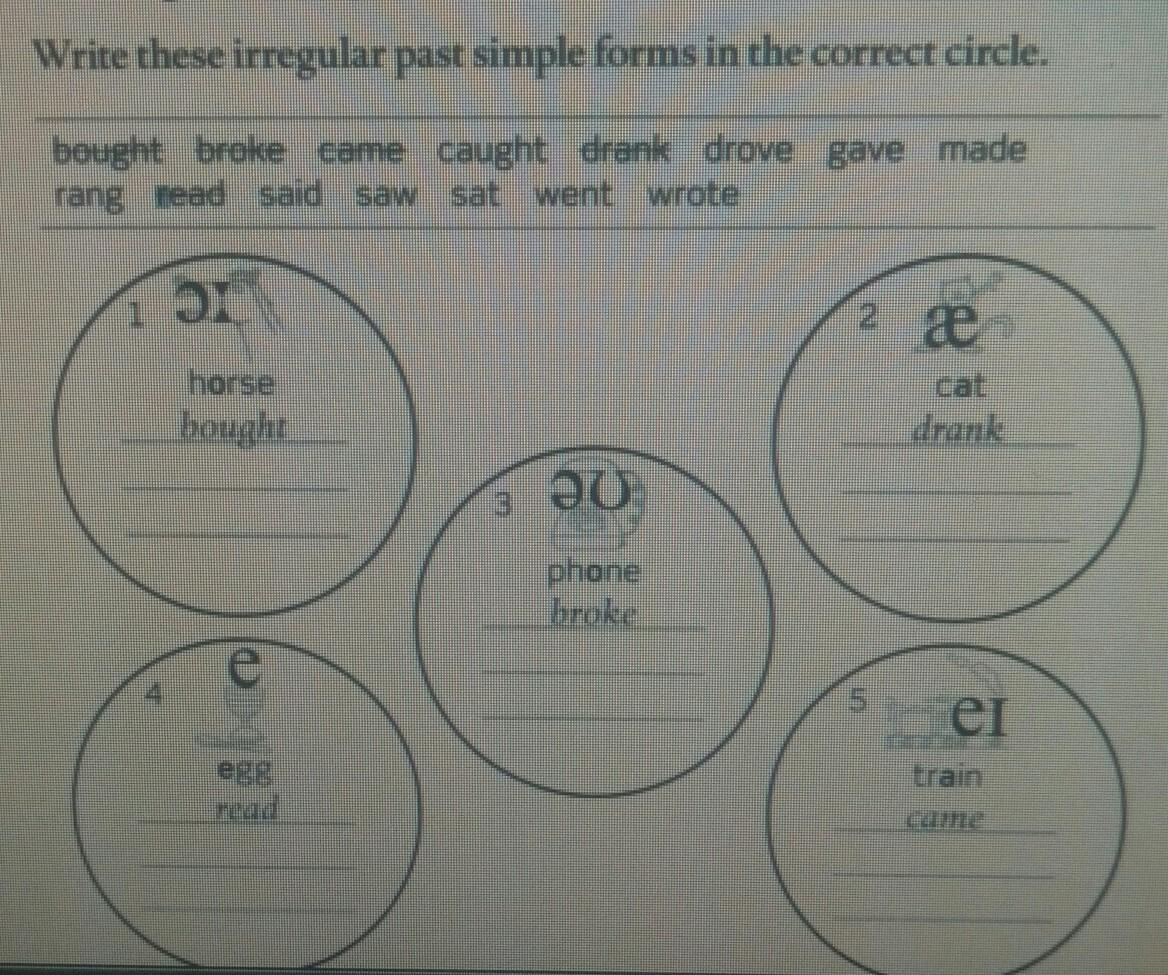1horse, bought, caught,wrote