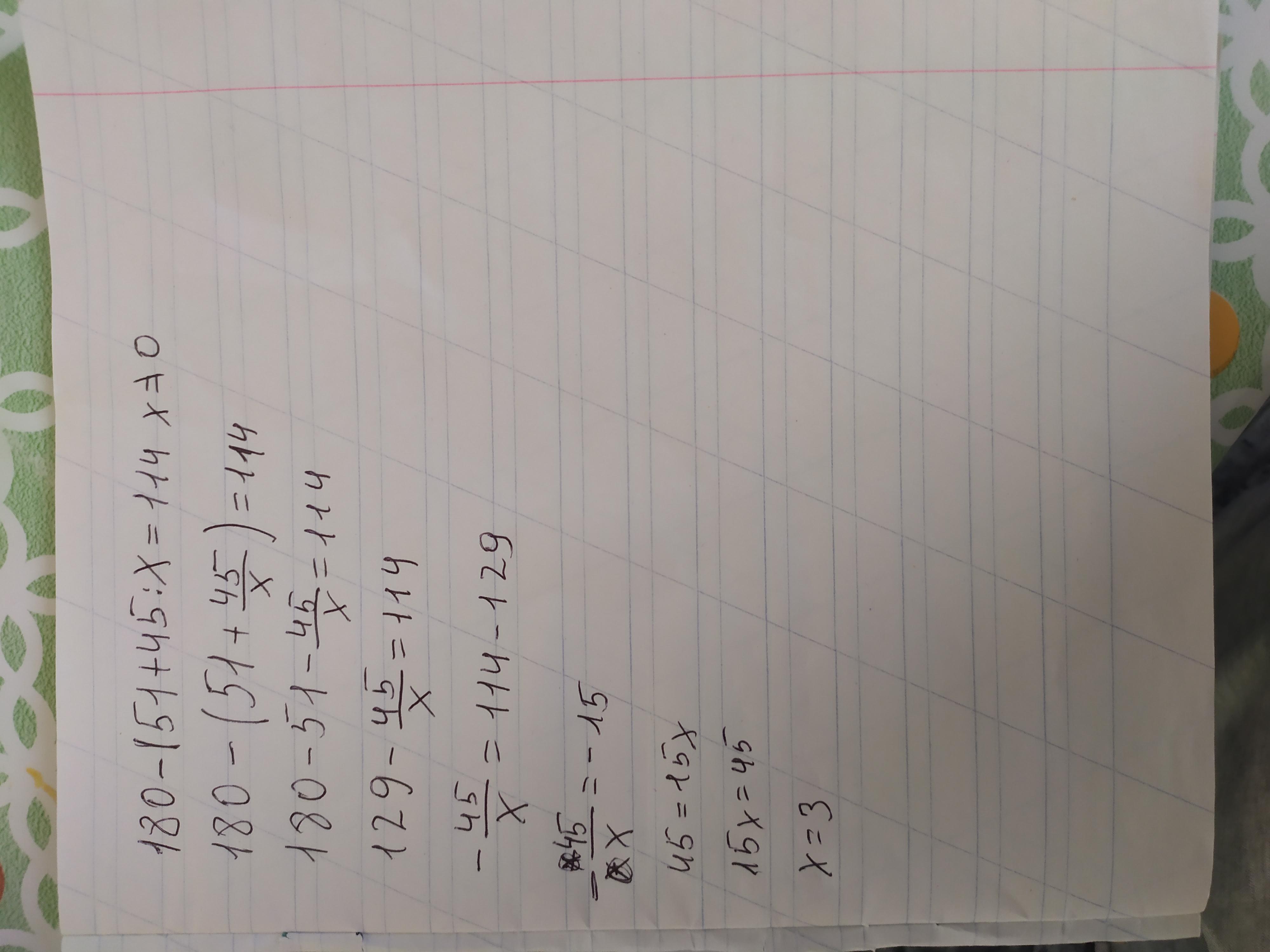Проверяем: 180-(51+45:3)=180-(51+15)=180-66=114