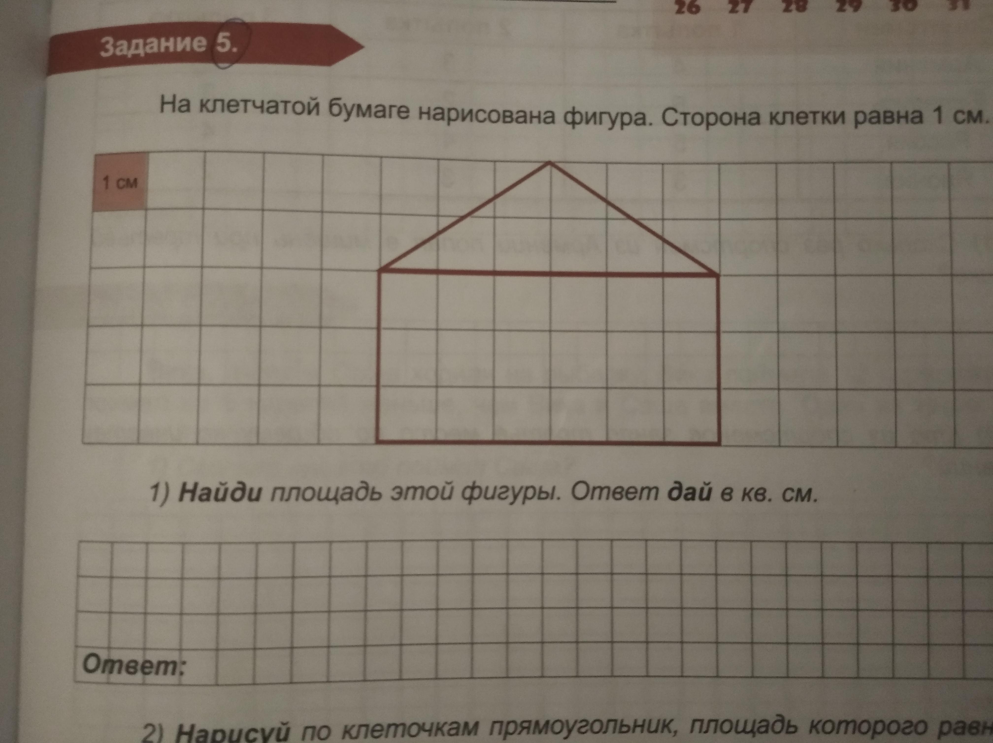 Найдите площадь этой фигуры ответ Дай в кв. см. Помогите решить задачу плиз побыстрее мне нужно сегодня ответ.