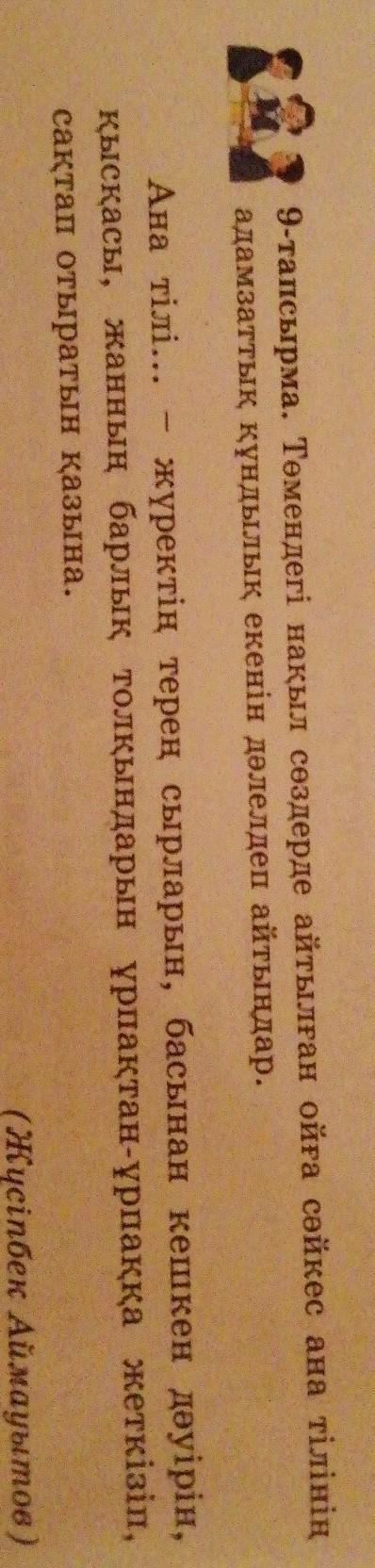 Ответ Ана тілі ол адам үшін ең маңызды нәрсе.Адам өз ана тілін білмесе ол үлкен ұят!Ана тілін құрметтеу керек,сыйлау керек!Ана тілі адамның кешкен өмірін