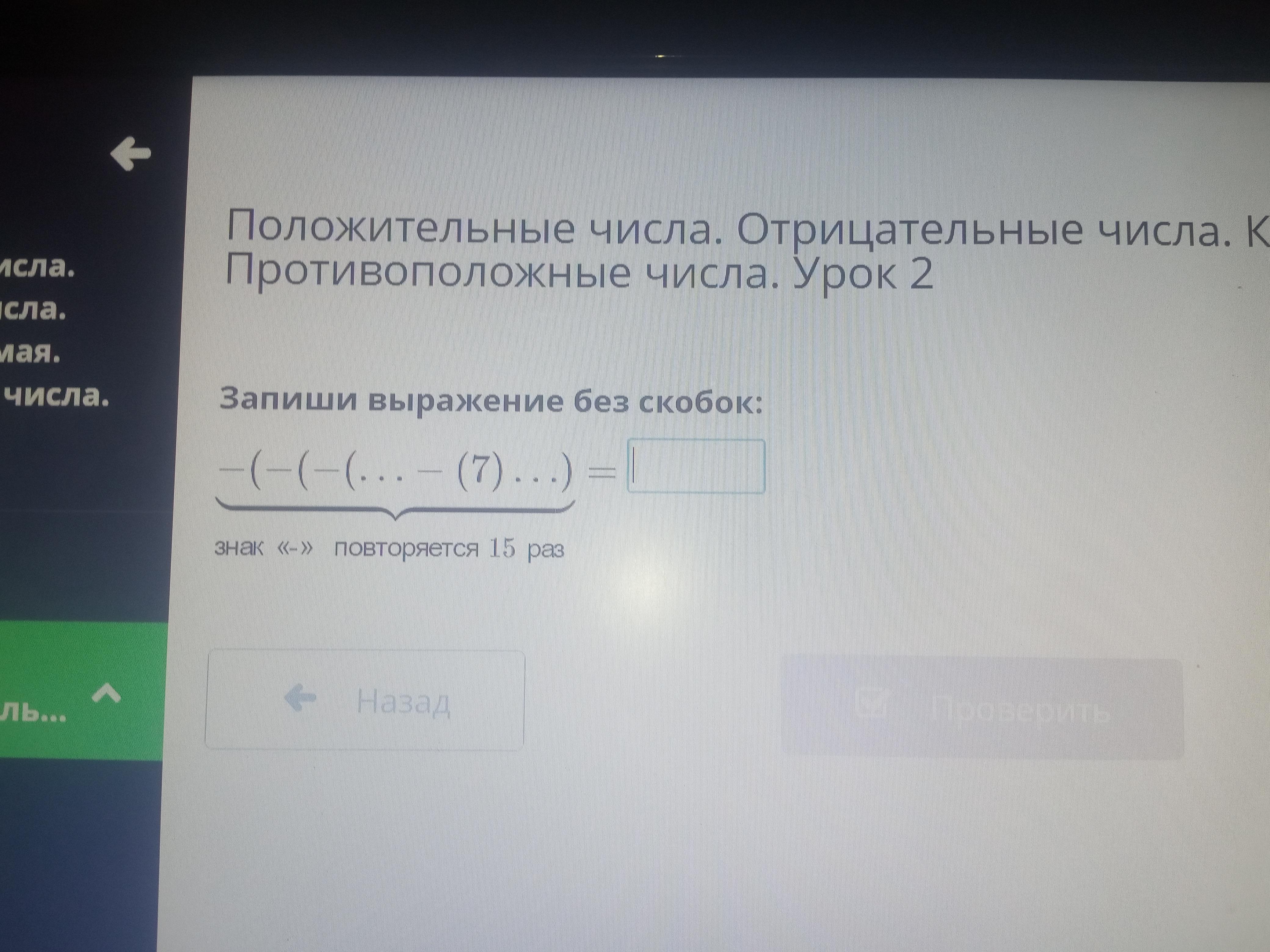 раз знак минус повторяется нечетное число раз, в данном случае 15, то ответ будет отрицательным -7