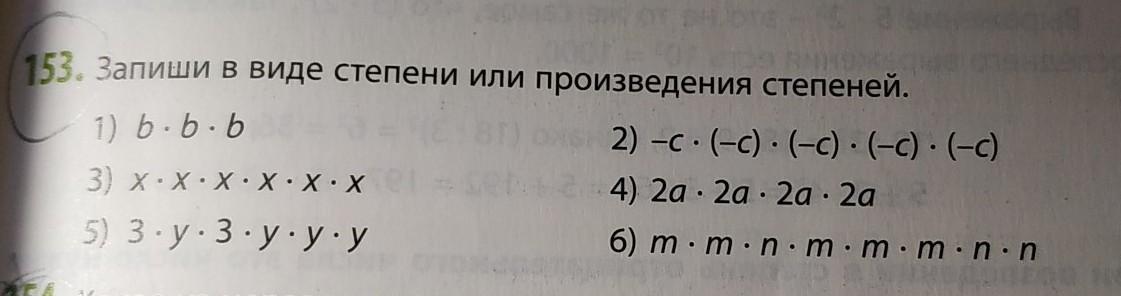 1)b³,2)-c⁵,3)x⁶,4)2a⁴,5)3²y⁴,6)m⁵n³
