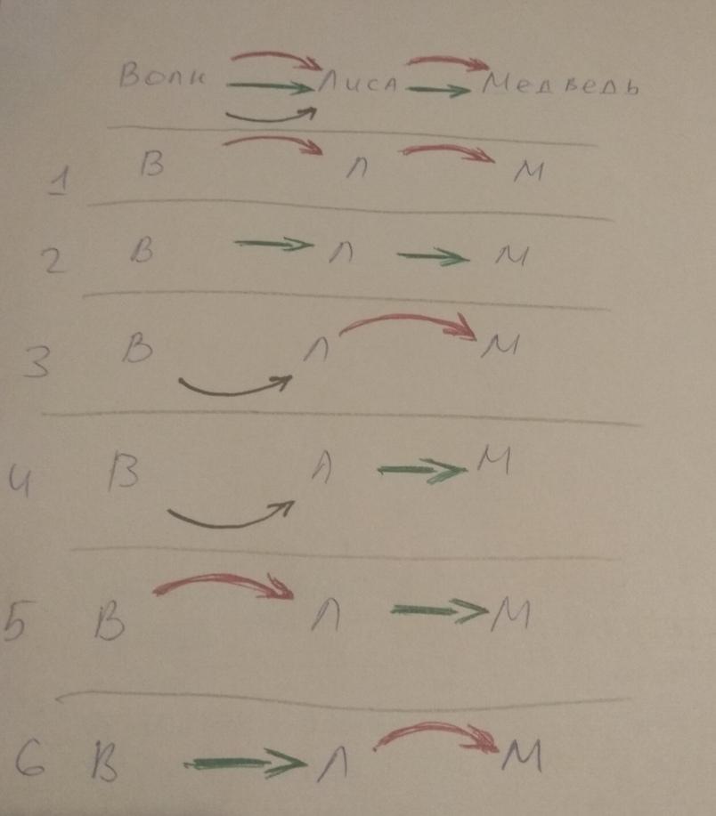 Из логова волка до норы лисы можно пройти тремя путями. Из норы лисы до берлоги медведя можно