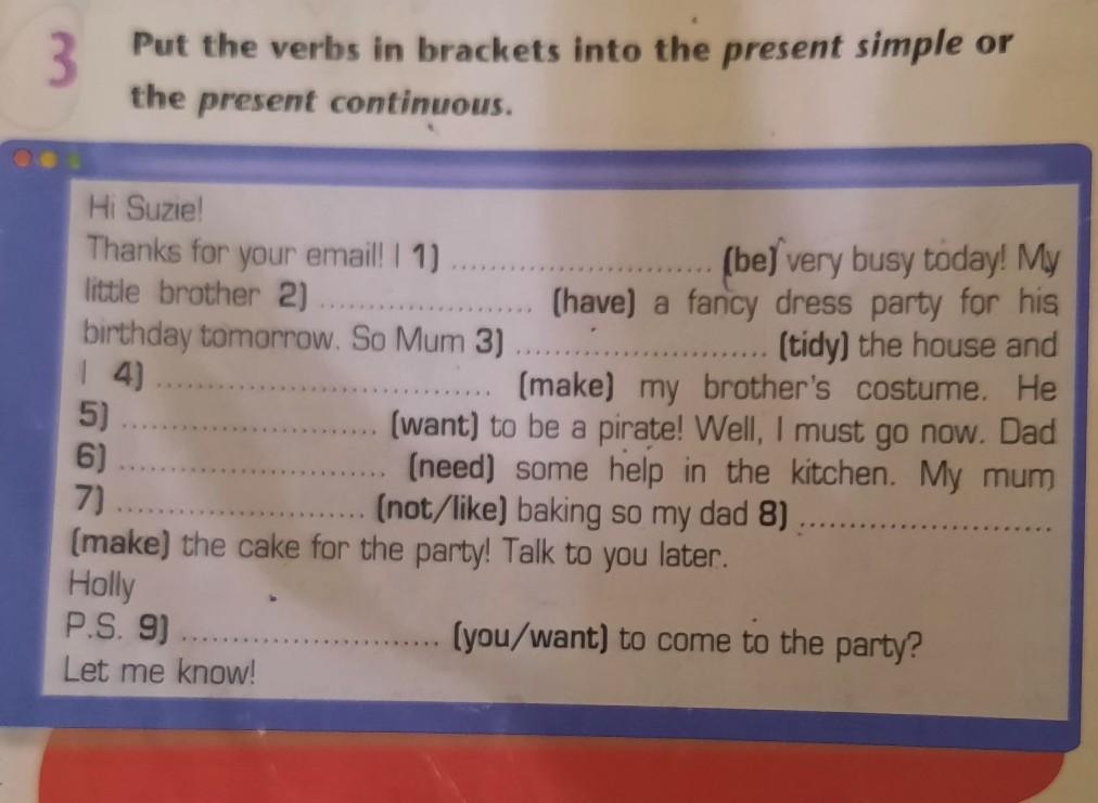 1) Was 2) had 3)tided 4) Made 5)wanted 6)needed 7) dont like8) they made 9)do you want