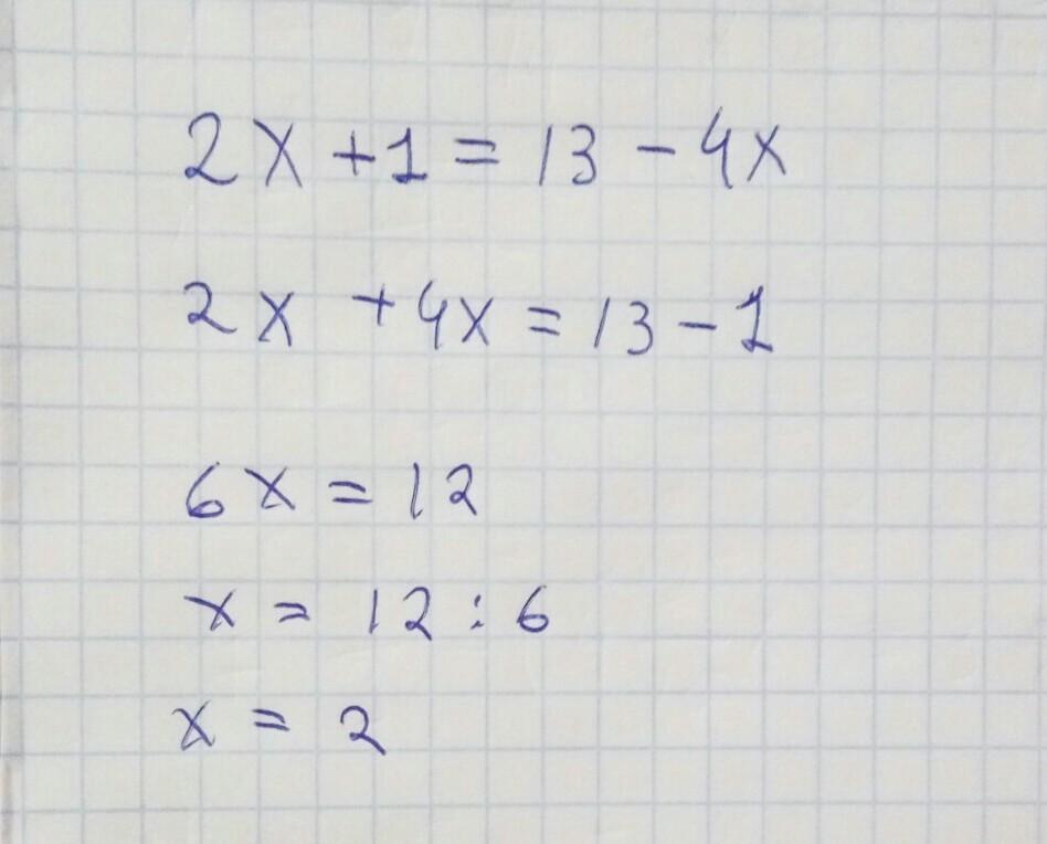 2х+1=13-4х