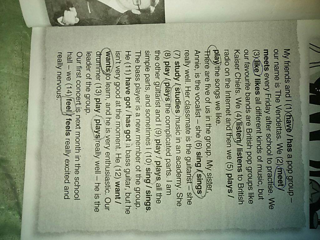 Ответ: have=владеет, meet=встречать, like = любить (Не любить человека а например видео какое либо) play = играть, listen = слушать,