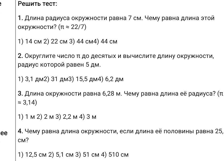 1. длина окружности 2πr=2*(22/7)*7=44cv