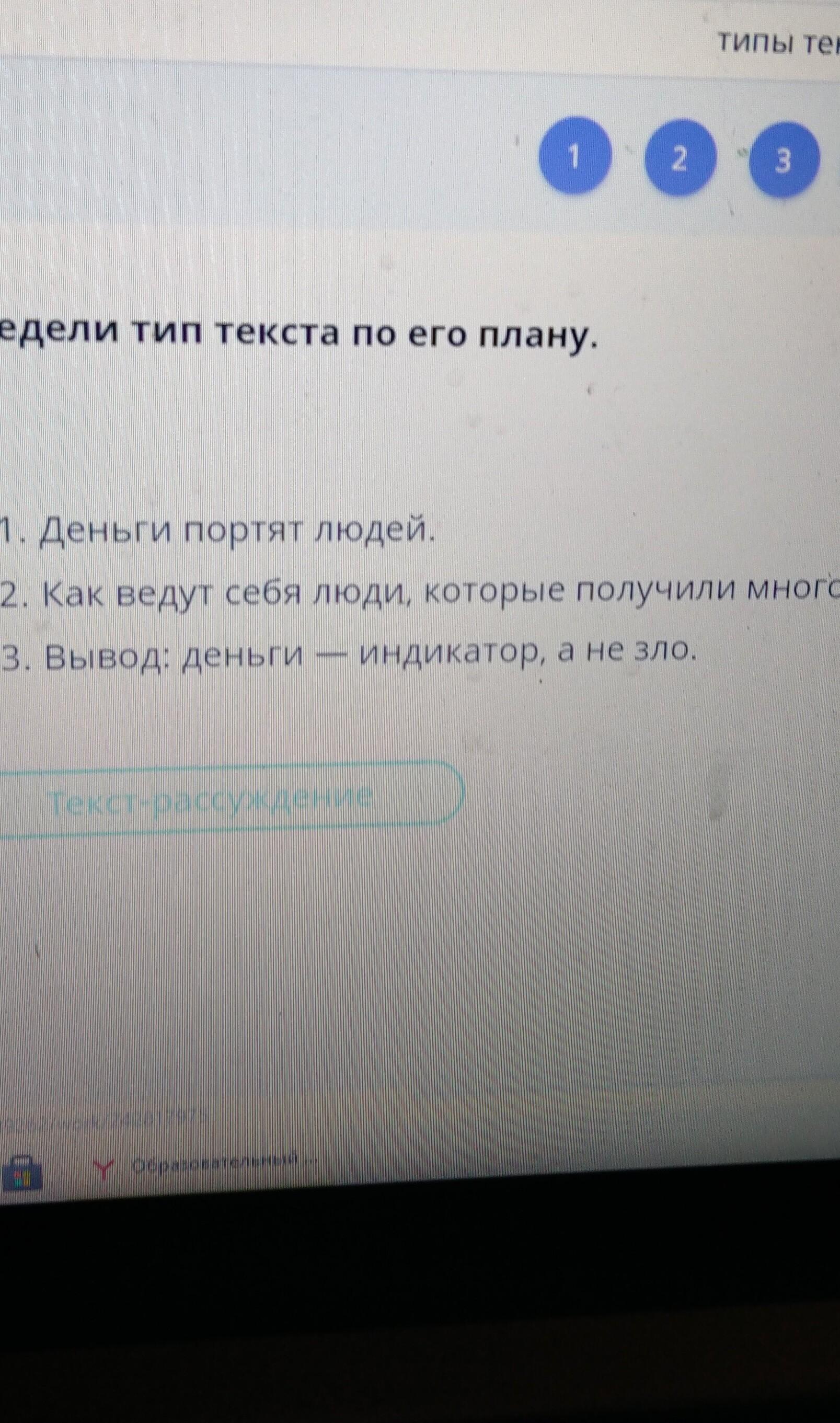 по ходу плана можно увидеть что сначала автор имеет одну позицию, а под конец другую, пришел он к ней рассуждая все варианты. (всего три типа предложений:повествование, рассуждение, описание)