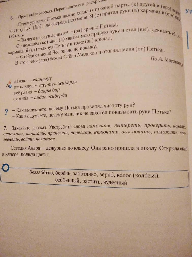 Сегодня Анара- дежурная по классу. Она рано пришла в школу. Открыла окно в классе, полила цветы. Затем намочила тряпочку и вытерла доску. Проверила есть ли мелы, начала искать, отыскаьа всего лишь 1 мел. Написала на доске сегодняшнюю дату. Принесла плакаты и повесила их. Включила отопление, так как в классе было прохладно, а после 10 минут выключила.