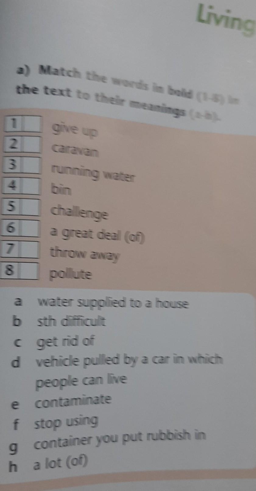 match the words in bold (1-8) in the text to their meanings (a-h)