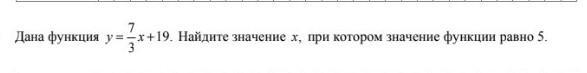 y- функция. она = 5. значит. 5=7/3х+19. так? ну, и начертить таблицу, где х и у, и вставляешь туда под х любые значения, по типу 1, 2, 4... и подсчитываешь y, вставляя х(те значения, которые ты написал под х). и чертишь график? Так?