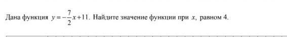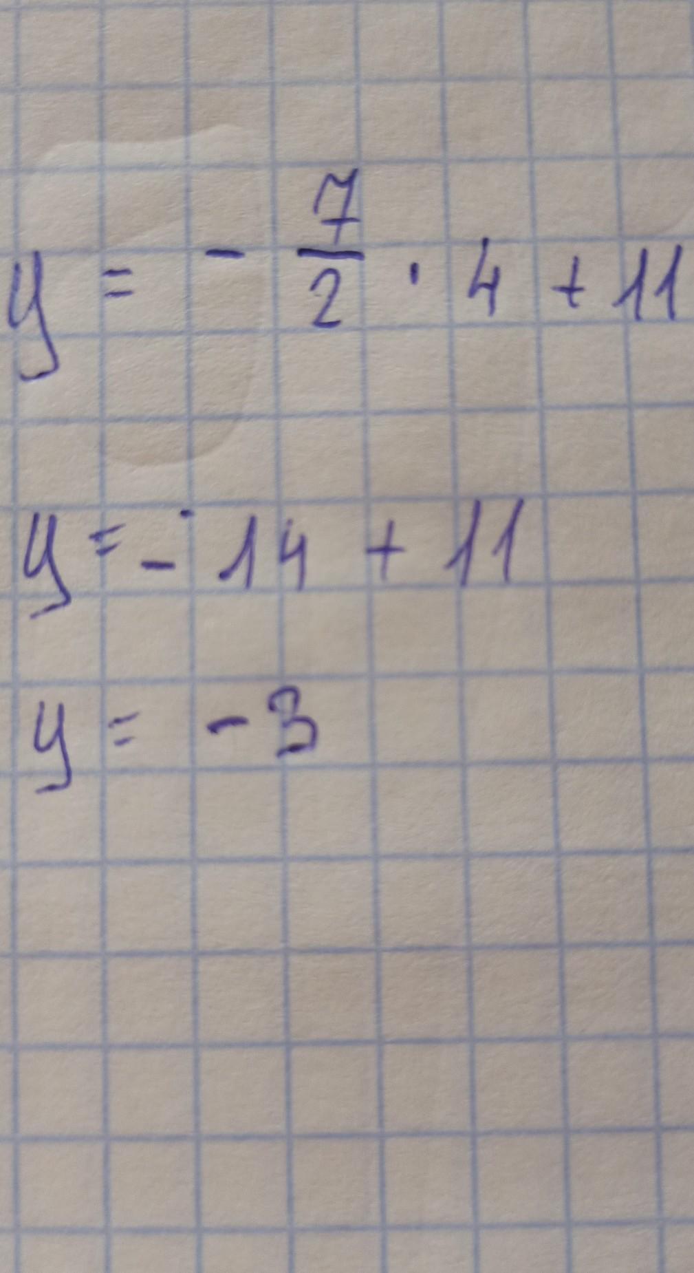 у=-7\2 *4 +11=(-7 *4)\2 +11= - 28\2 +11= -14+11=-3
