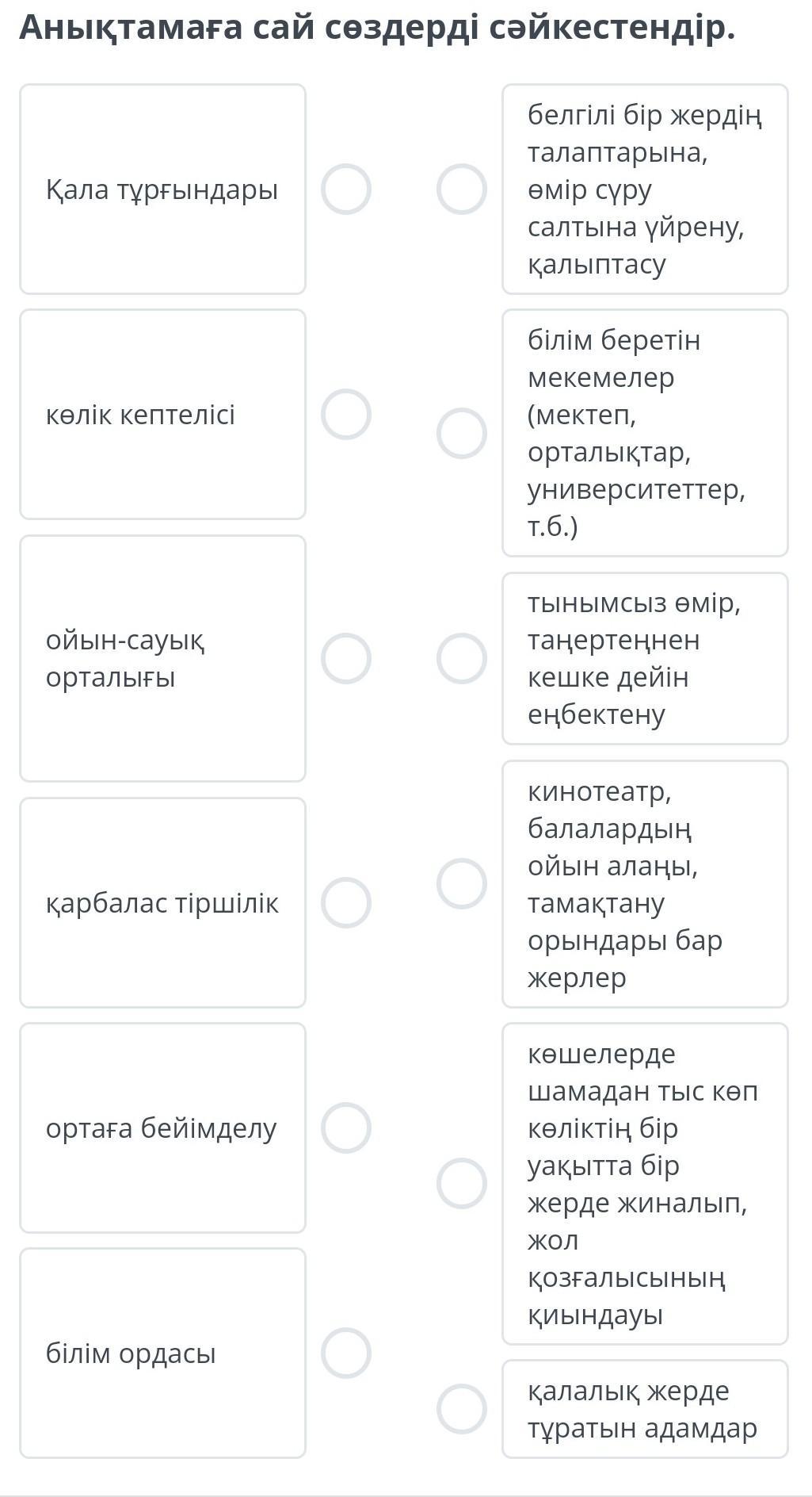 Ортаға бейімделу-------- белгілі бір жердің талаптарына
