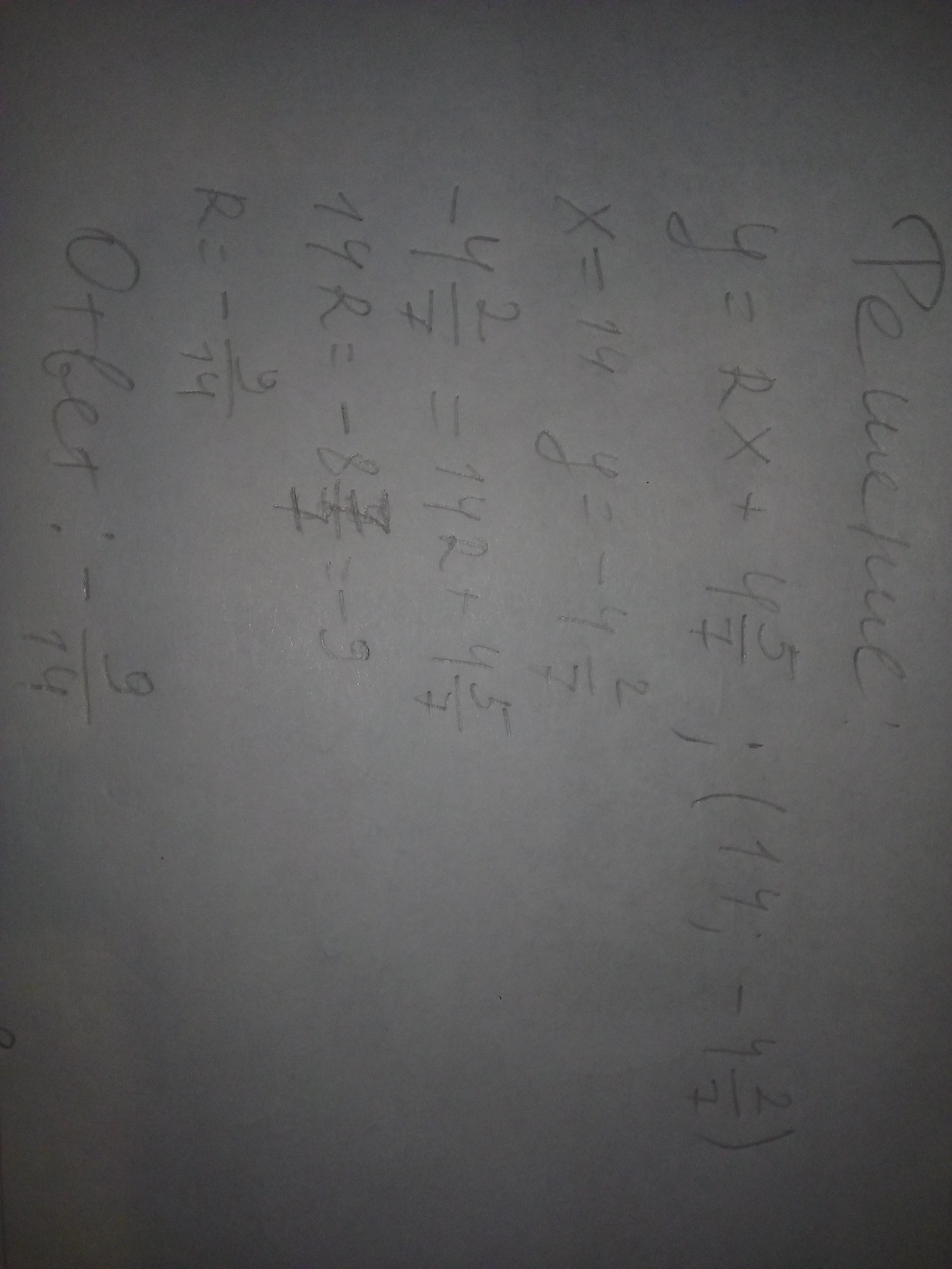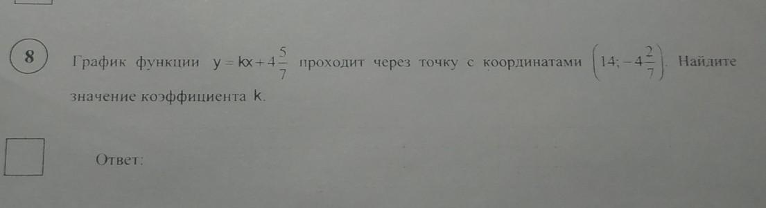 График функции y=kx+4 5/7 проходит через точку с координатами (14; -4 2/7). Найдите значение коэффициента k. помогите пожалуйста