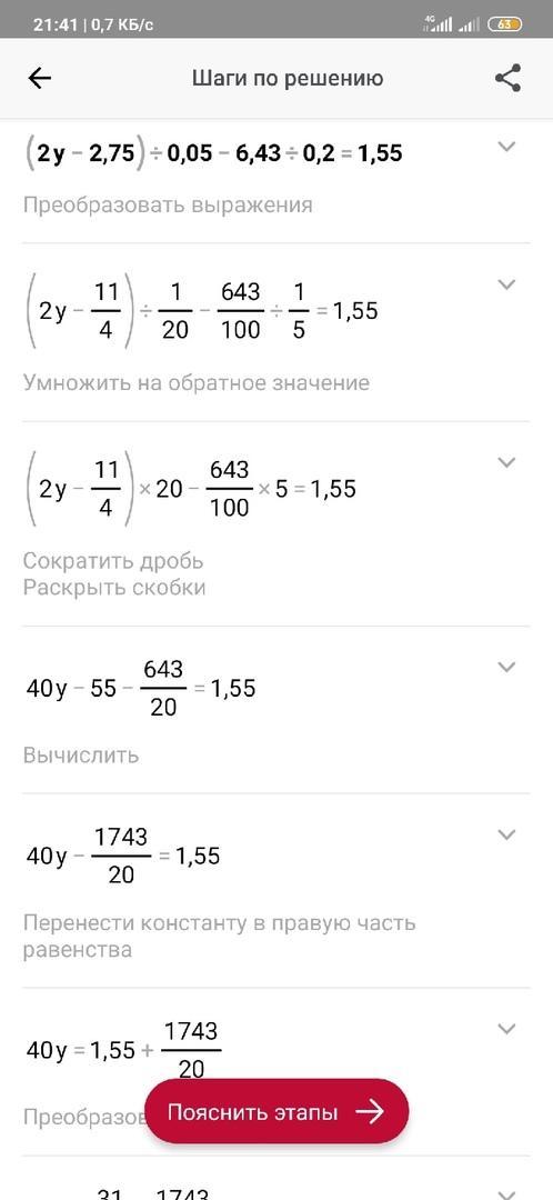 2y-2,75:0,05-6,43:0,2=1,55