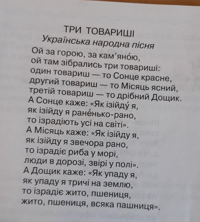 Іменники : горою, товариші, товариш, сонце, місяць, дощик, риба, люди, звірі, полі, землю, жито, пшениця, пашниця.