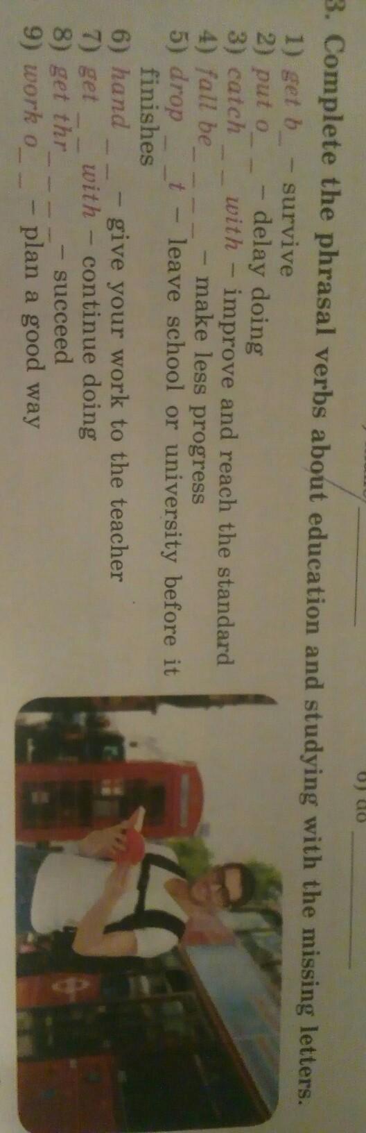 Ответ: Get By - Survive, Put Off - Delay Doing, Catch On With - Improve And Reach New Standard, Fall Behind - Make Less Progress, Drop Out - Leave School..., Hand It - Give Your Work..., Get On With - Continue Doing, Get Trough - Succeed, Work Off - Plan A Good Way.