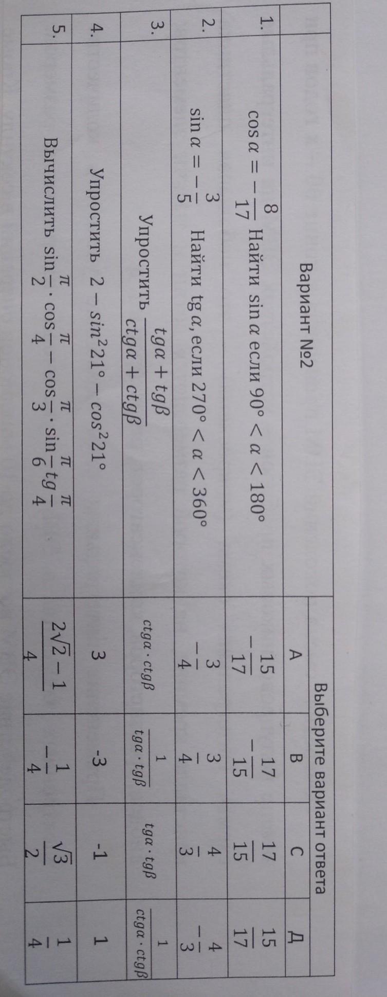 1. синус в периоде π/2 до π положителен, тоесть варианты А и Б не подходят, но так как синус принадлежит -1≤sin≤1,значит вариант 17/15 не подходит (тк 17/15>1)