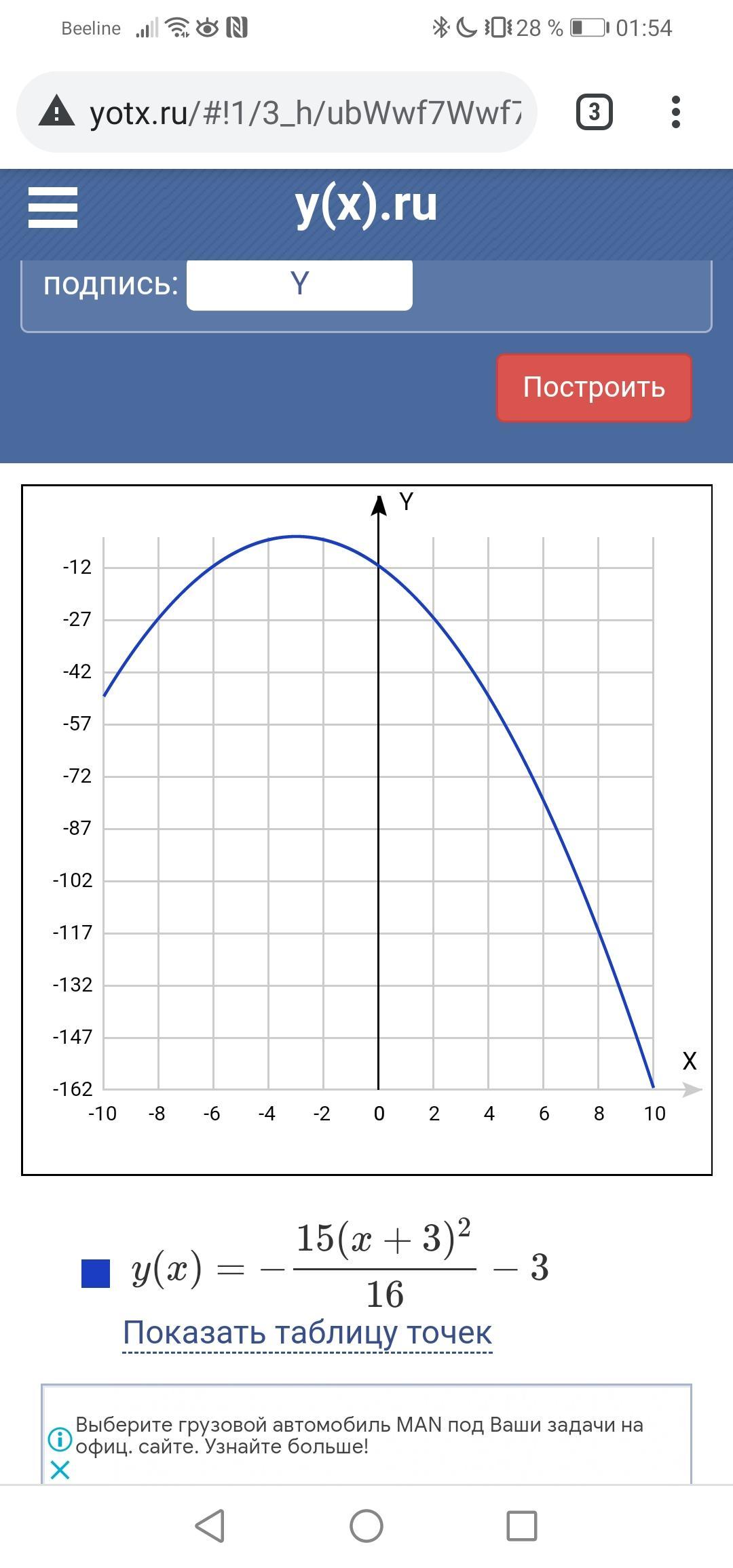 Решите график функции y=-15/16*(x+3)^2-3 с решением и желательно чертежом. Даю 30 баллов