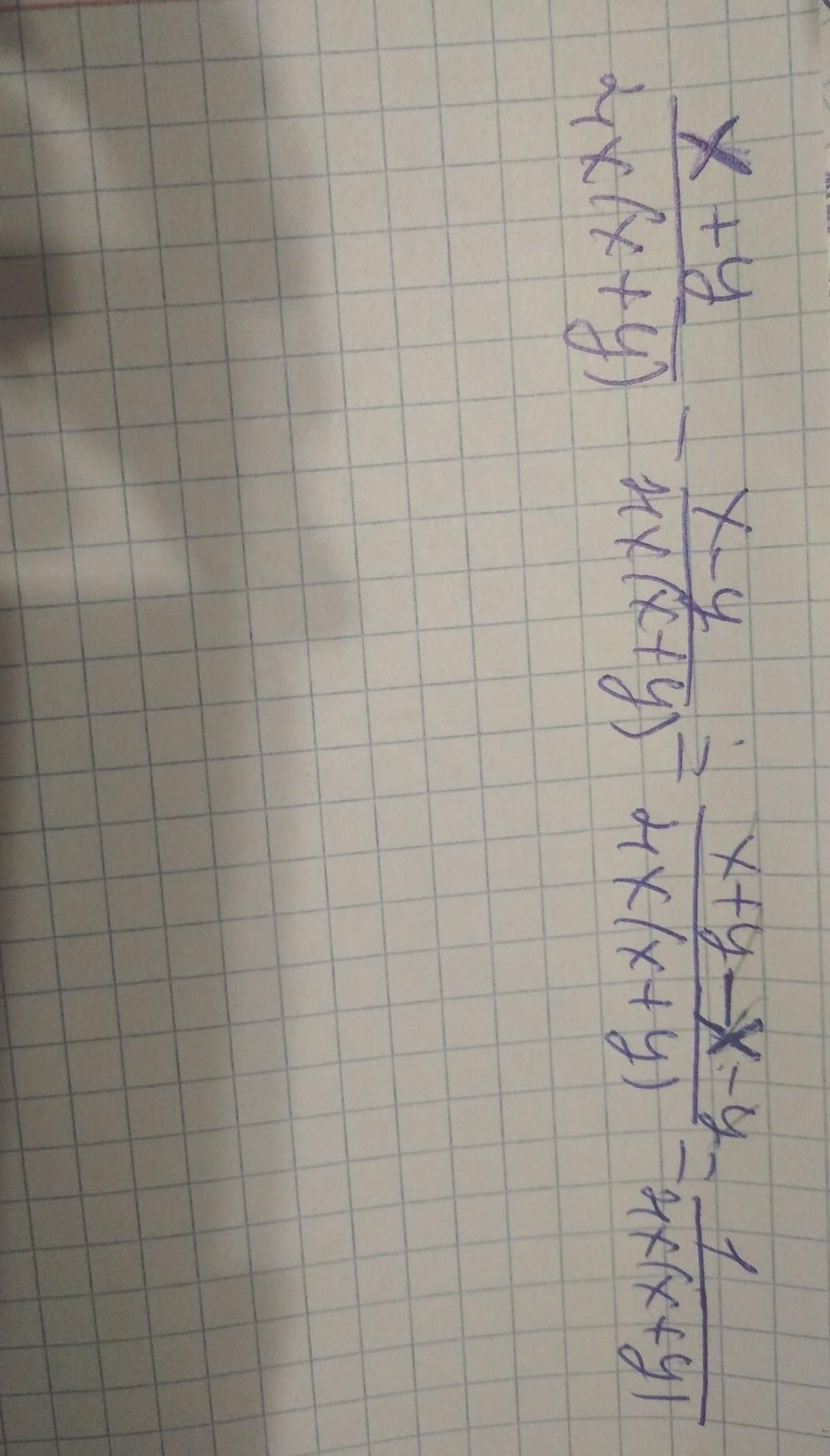 х+у/4х(х+у)-х-у/4х(х+у)=х+у-х-у/4х(х+у) =1/4х(х+у)