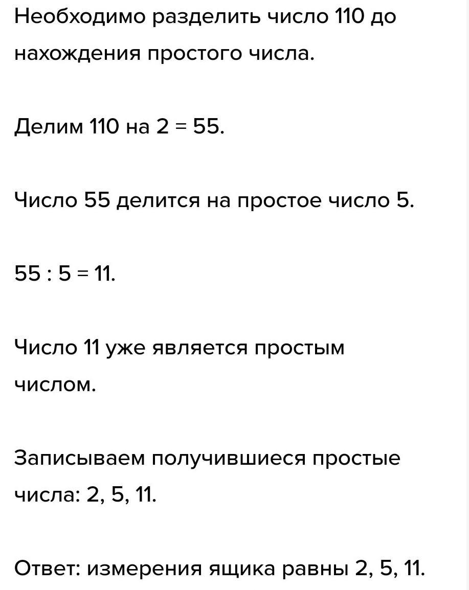 Найди измерения ящика, выраженные простыми числами. Ответ запиши в порядке возрастания.