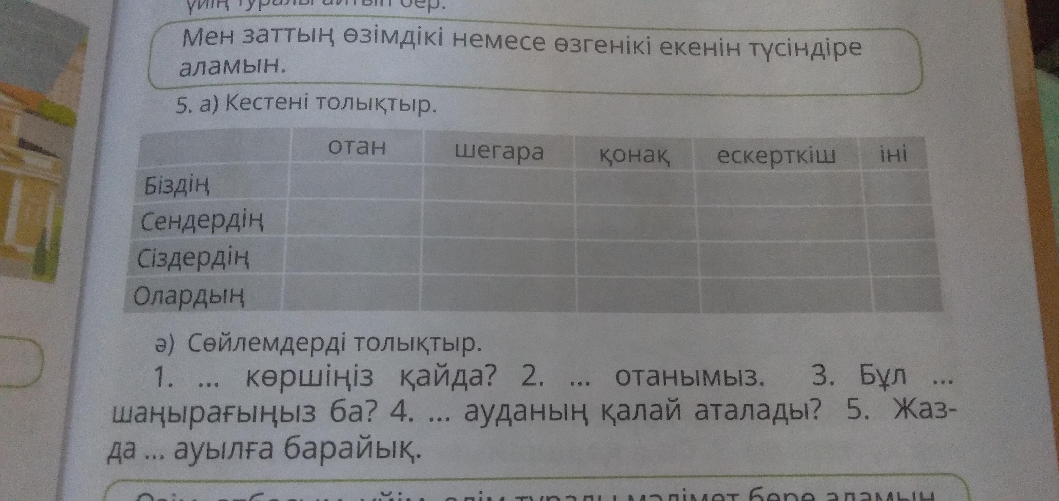 Сіздің: Отаныңыз ; шегараңыз ; қонағыңыз ; ескерткішіңіз; ініңіз .