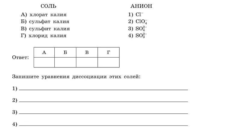 В скобках указаны заряды ионов, так они пишутся без скобочек. Диссоциация - процесс распада соли на катионы и анионы. Анионы тебе уже даны, катион - калий.