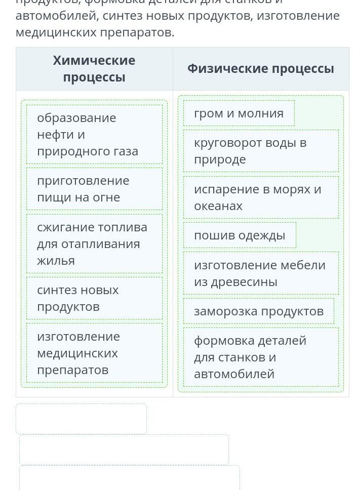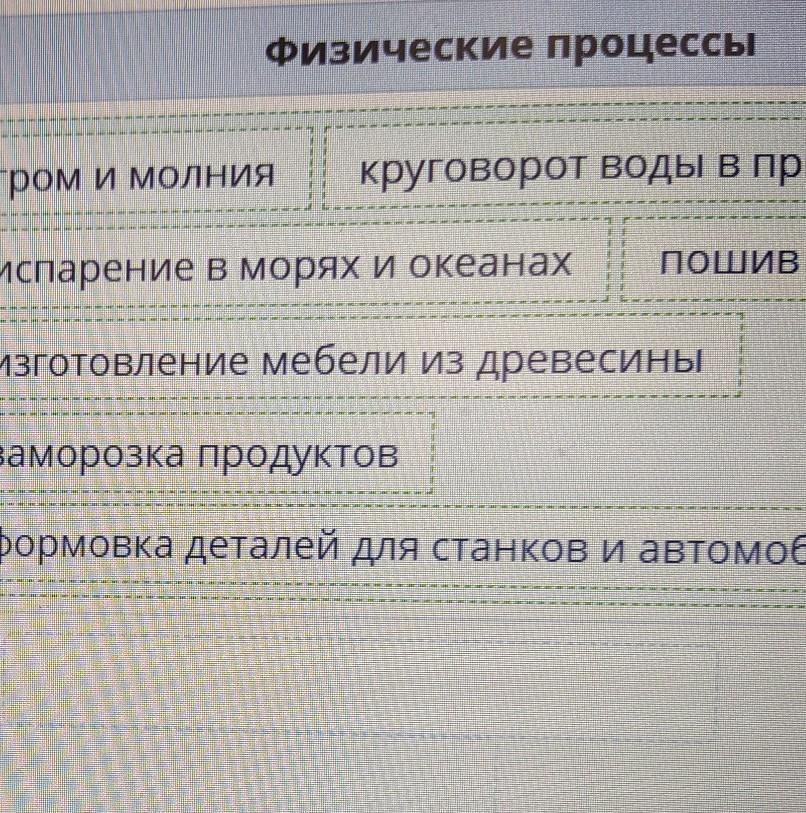 Определи, какие процессы являются физическими, а какие химическими.