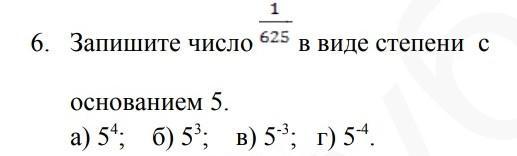 5 в минус 4 степени = 1/5*5*5*5 = числу 0,0016