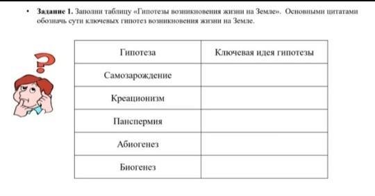Заполни таблицу "Гипотезы возникновения жизни на земле". Основными цитатами обозначь сути ключевых гипотез возникновения жизни на земле