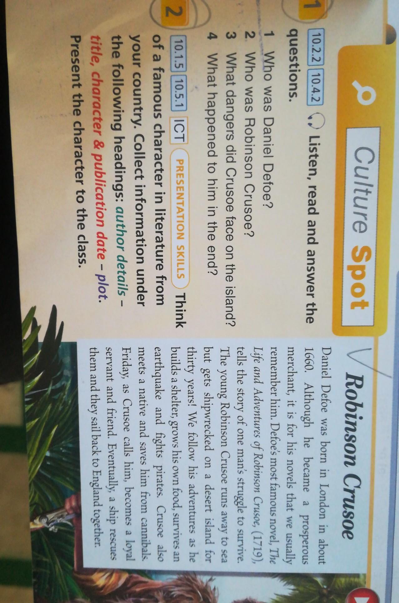 2.Robinson Crusoe was a young man who got shipwrecked on a desert island for 30 years.