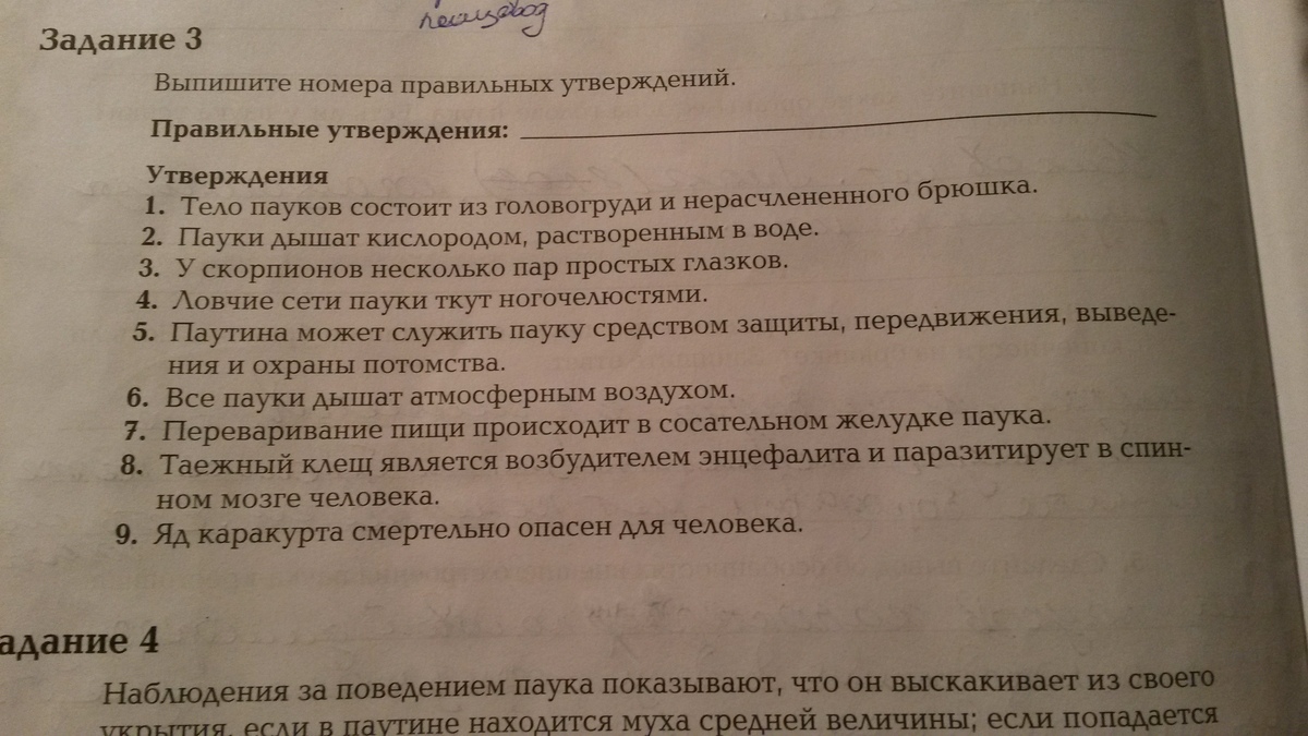 1-тело пауков состоит из головогруди и нерасчленённого брюшка,а также 3,5,6,9-100%