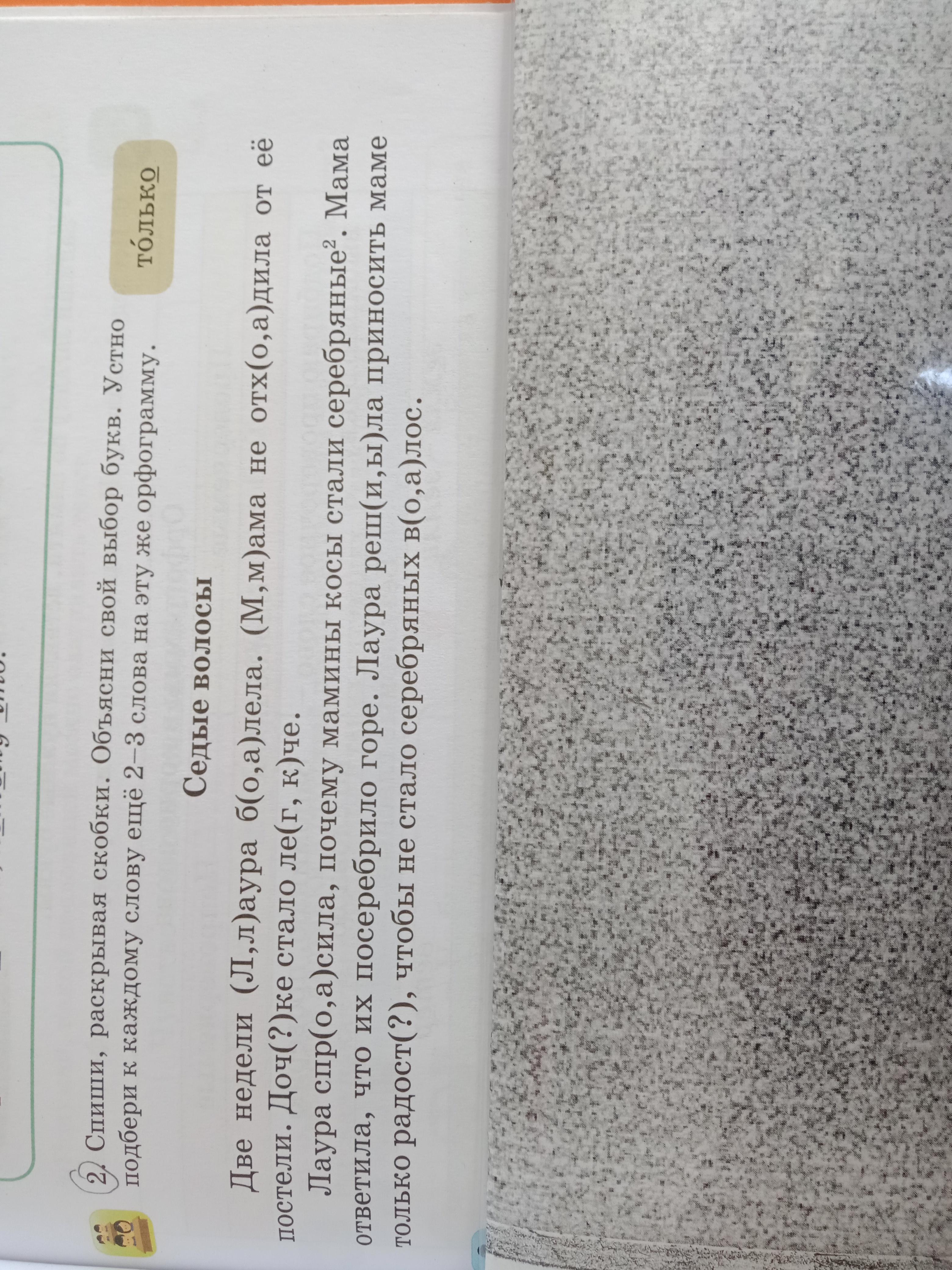 Две недели Лаура болела. Мама не отходила от ее постели. Дочке стало легче. Лаура спросила, почему мамины косы стали серебрянные. Мама ответила, что их посеребрило горе. Лаура решила приносить маме только радость, чтобы не стало серебряных волос.